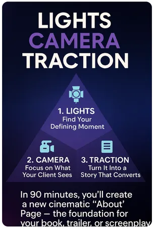 In 90 minutes, you’ll turn your real-life transformation into a cinematic About Page that becomes the foundation for your authority book, trailer, or screenplay...